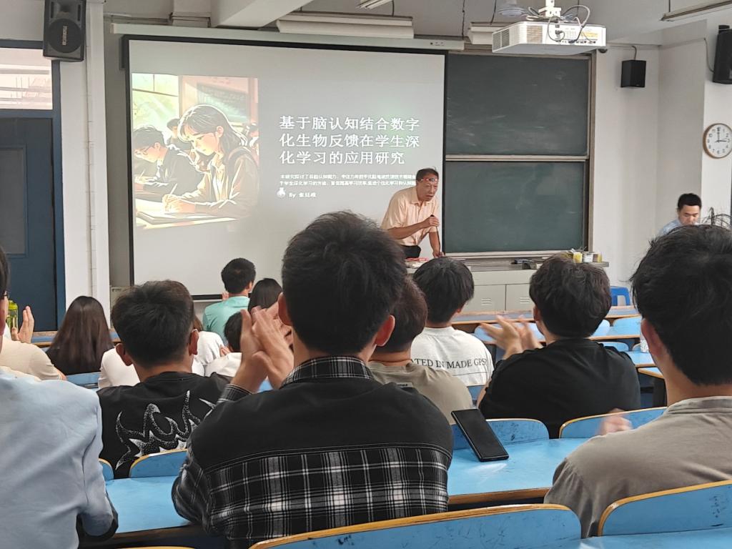 会上,张廷政教授做了题为《基于脑认知结合数字化生物反馈在员工深化学习的应用研究》的学术报告。他以该项研究在某地13所小学的成功试用结论向员工们深入阐述了脑认知科学的核心理论和其在教育领域的潜在应用。他强调,科技的快速发展使我们得以更深入地探索大脑的奥秘,而数字化生物反馈技术则为我们提供了一个实时监测员工学习状态的工具,进而能为员工提供更为精准的学习建议。