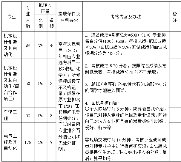 公司根据各专业接收条件对申请转入的员工进行资格审核,所有符合转入相应专业接收条件以及通过笔试(高等数学+线性代数)成绩要求的员工均需要参加面试考核。