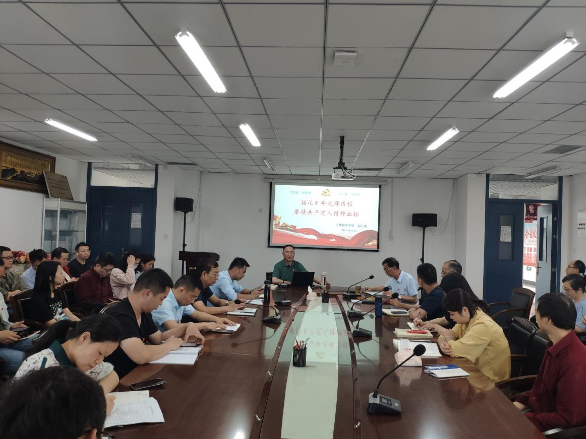 校机关党委赵公弼书记以《铭记百年光辉历程 赓续共产人精神血脉》为题,从深刻领会习近平总书记关于党的历史的重要论述、全面了解中国共产党百年奋斗光辉历程和历史成就、赓续中国共产党人在长期奋斗中铸就的伟大精神等三个方面深刻阐述了党组织近百年发展历程,为与会党员干部、教师上了一堂生动的党史学习教育课,也使大家接受了一次深刻的党性教育和精神洗礼。
