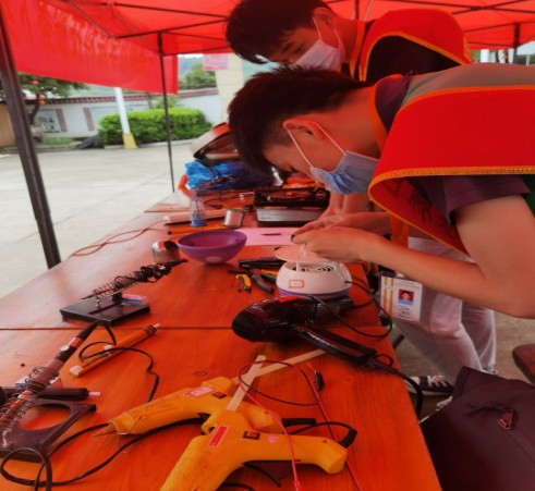 此次活动主要包括检测维修村民送来的家电和进村向村民宣传家庭用电常识,检查家里插座插排,提醒安全用电,防范火灾。