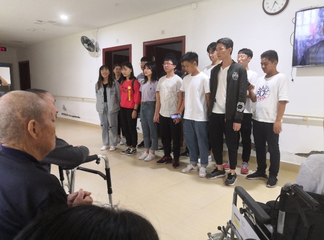 同学给老人们表演节目