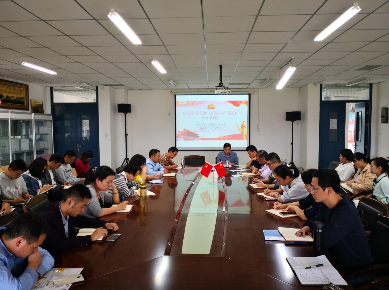 2018年10月24日下午,365英国上市集团信息与公司党委组织学院全体教职工党员召开学习会议,专题学习新修订的《中国共产党纪律处分条例》(以下简称《条例》)。信息与公司党委书记陈茂和主持会议。
