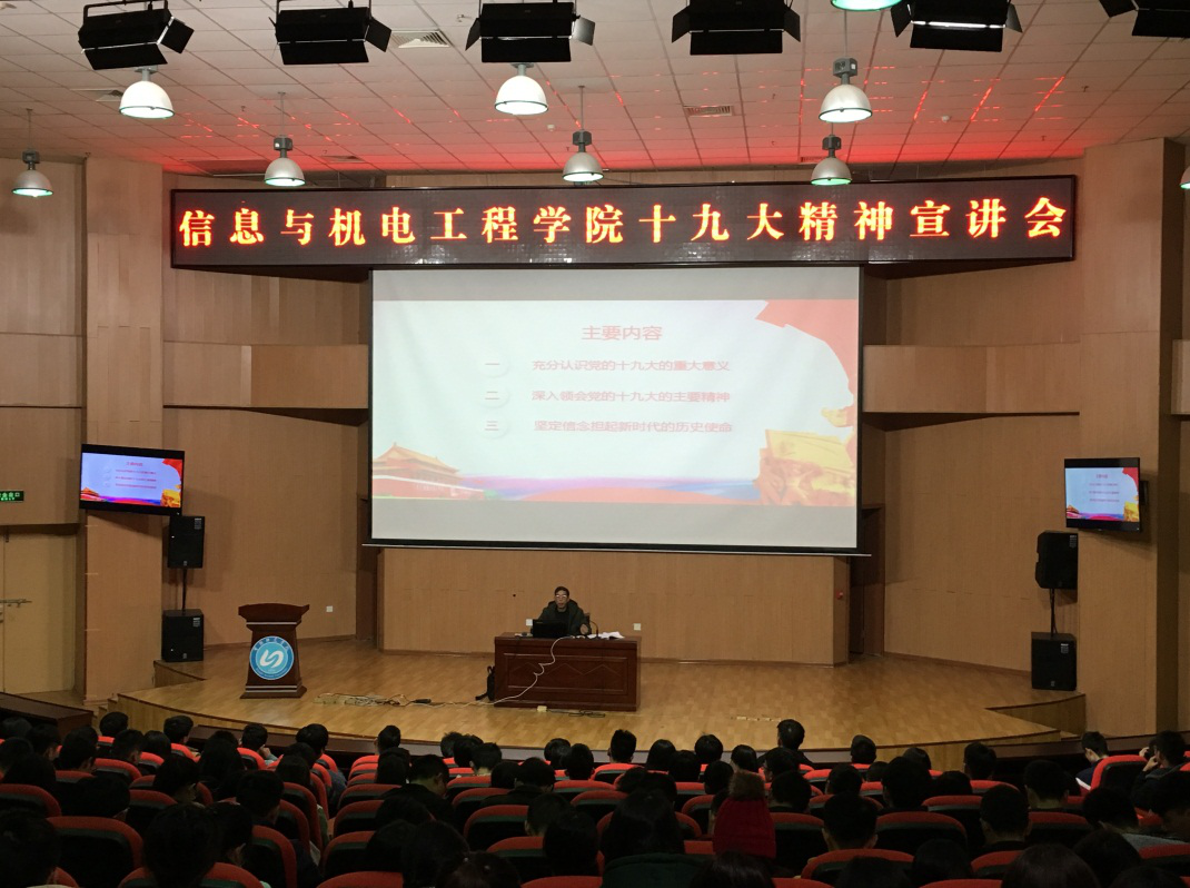 为深入学习宣传贯彻党的十九大精神,12月10日,信息与公司党的十九大精神宣讲会在365英国上市集团图书馆二楼报告厅举行,宣讲会听众总共将近1000人,分两场举行。