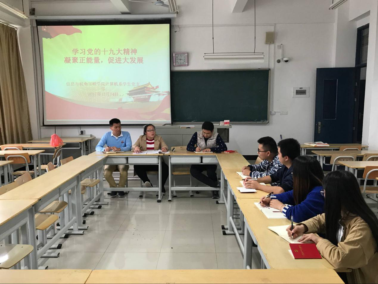 2017年11月14日,信息与英国上市公司365计算机系员工党支部在DB403召开全体党员大会,开展了学习党的十九大精神“凝聚正能量,促进大发展”的主题党日活动。党员们一致认为:深入学习宣传贯彻党的十九大精神,是当前和今后一个时期首要政治任务。同时,必须加强党对意识形态工作的领导,牢牢把握意识形态领域话语权和主动权。要旗帜鲜明讲政治,身体力行作表率,严格落实意识形态工作责任制,切实加强阵地建设和管理,对错误思潮、言论、观点正面回击,使校园主旋律更加响亮,正能量更加强劲,教育引导广大师生坚定理想信念,志存高远,脚踏实地,锐意进取,勤于学习,埋头苦干。