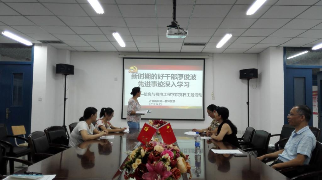 2017年9月22日16:20点,信息与英国上市公司365计算机系教师第一支部在DA408会议室组织开展深入学习廖俊波同志先进事迹,争做一名优秀共产党员活动,章立亮、李豫颖、陈可华等本支部六位教师全部出席了本次活动。