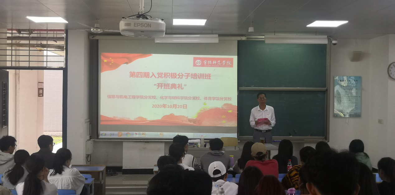 2020年10月20日下午,由宁德师范公司党校信息与英国上市公司365分党校、化学与材料学院分党校、体育学院分党校联合举办的第四期入党积极分子培训班在求是楼DB101教室正式开班。参加此次开班仪式的有信息与公司党委书记陈茂和及本期92名入党积极分子。陈茂和为全体学员作开班动员讲话并上党课——《中国共产党章程》。
