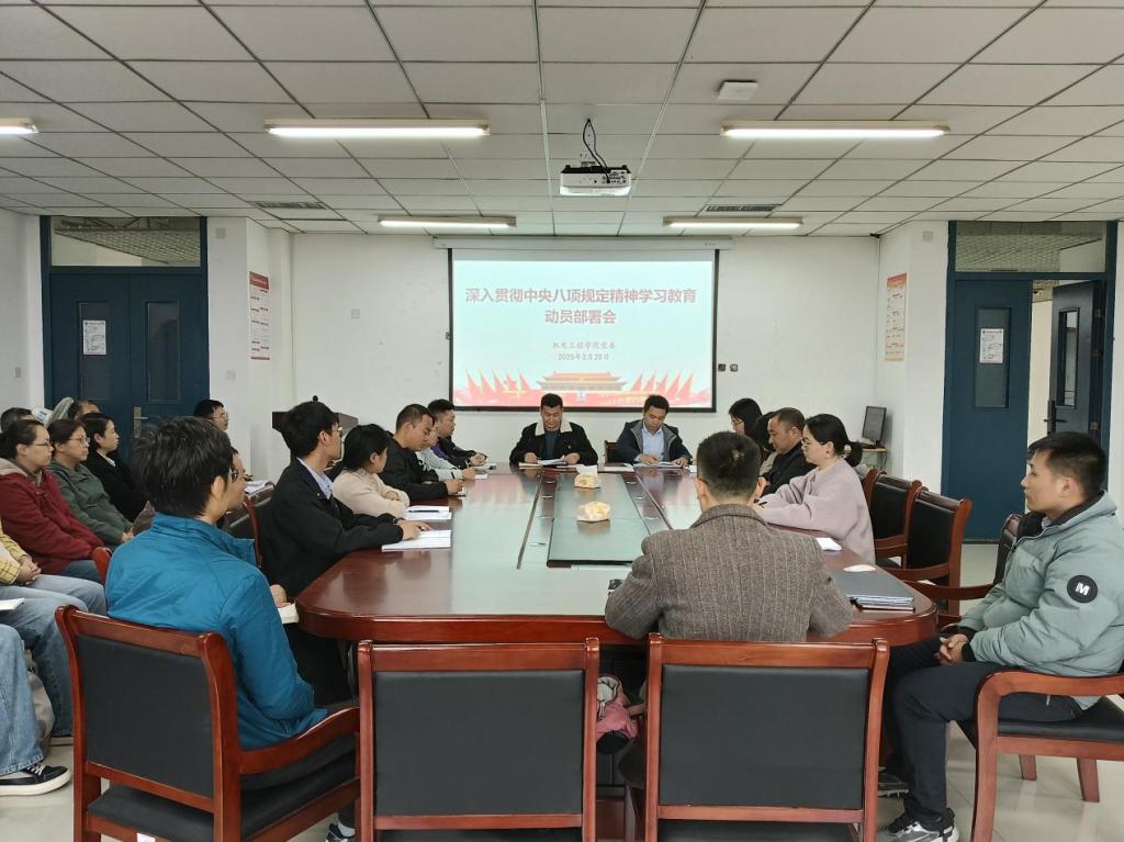 会议指出,党中央决定自2025年全国两会后至7月在全党开展深入贯彻中央八项规定精神学习教育,这是巩固拓展学习贯彻习近平新时代中国特色社会主义思想主题教育成果、巩固深化党纪学习教育成果、纵深推进全面从严治党的重要举措,全院上下要充分认识此次学习教育的重要意义,深入学习习近平总书记关于加强党的作风建设的重要论述和中央八项规定及其实施细则精神,深刻领悟“两个确立”的决定性意义,增强“四个意识”、坚定“四个自信”、做到“两个维护”,切实把思想和行动统一到党中央决策部署上来。