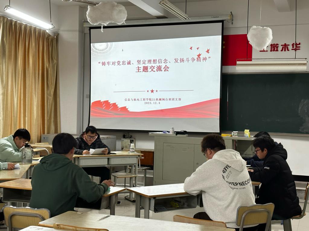 中期,21级机械闽台班团支部开展了“铸牢对党忠诚、坚定理想信念、发扬斗争精神”的主题交流会,班级团支部书记吴恩泽组织团员围绕四个专题教育和交流会主题进行了交流探讨,研究学习了《习近平著作选读》内容精神,把同学们在学习生活中遇到的实际问题进行了整理分析,并提出相应的解决办法。21级车辆工程班组织开展“挺膺担当励青春,奋楫扬帆向未来”主题教育学习会,组织团员和青年参与此次会议。班级班长黄夏怡带领全体团员和青年学习贯彻习近平新时代中国特色社会主义思想。通过主题教育学习会,每位团员和青年都有丰富的收获,将自己的个人理想同中国式现代化建设相结合,有了更全面的认识和理解。