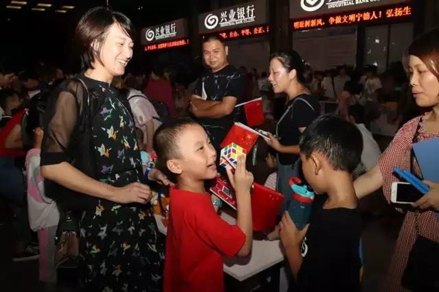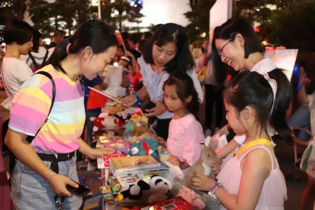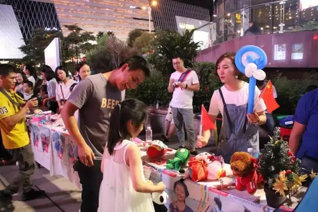 当晚5时许,宝信城市广场洋溢着真情,150组爱心家庭与40组“星孩”家庭结成对子,在宁德师院与爱心商家的协助下,搭建起一排排“义卖小商铺”,在“货架”上陈列的,除了爱心商家捐赠的食品和日用品外,大部分是结对子家庭的家长和孩子们合作完成的手工艺品、油画,还有爱心家庭捐出的玩具、图书等。