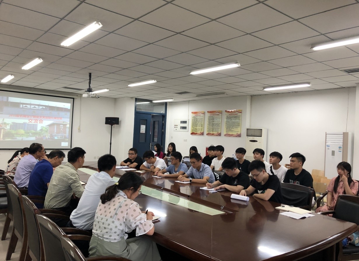6月25日下午,赴台学习员工返校交流会在求是楼A408会议室召开,公司党委书记陈茂和,学院副经理章立亮、赖联锋,公司党委副书记傅亮,办公室主任江小青,学工办主任兼团委书记王秋菊,辅导员张春美出席交流会,2016级机械设计制造及其自动化专业(闽台)班全体员工参加了此次会议。会议由公司党委副书记傅亮主持。