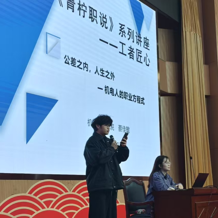 讲座中,蔡佳敏结合自身从校园到职场的成长经历,围绕行业与职业分析、职业决策、求职策略、职场适应四大板块展开分享。她分析了近年机电行业的就业情况,强调“选择比努力更重要”,建议同学们结合个人实际情况制定明确的目标;在求职策略环节,她详细讲解了简历优化、面试技巧及实习积累的重要性;谈及职场适应时,她以生动案例提醒大家“专业能力是基石,但沟通与学习力更是长远发展的密钥”。在互动环节中,同学们踊跃提问,蔡佳敏都一一耐心解答,并鼓励学弟学妹们:“机电人的职业方程没有标准解,但保持好奇、敢于试错,一定能找到自己的最优解。”