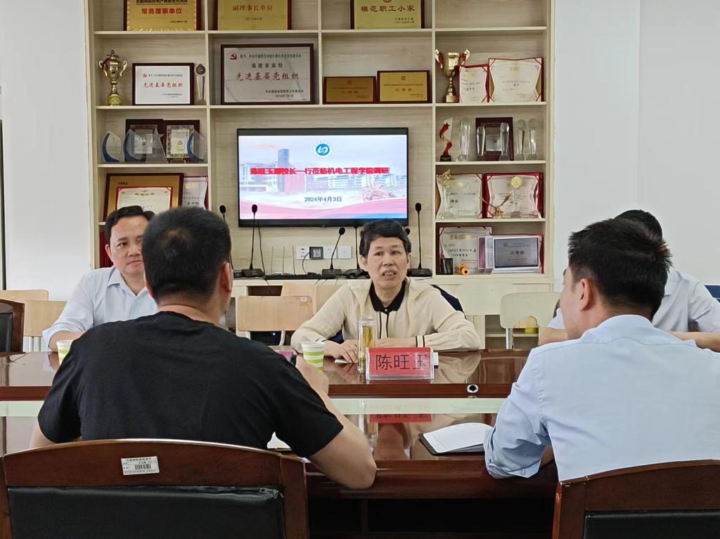 4月3日,陈旺玉副董事长莅临公司走访调研,发规处、资后处、财务处等部门负责人陪同调研。全体院领导、各科室负责人、各系主任、实验室主任参加了调研座谈。
