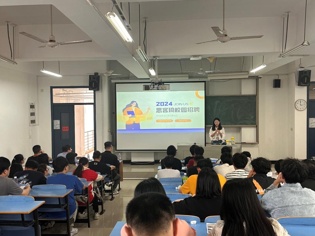 本次宣讲由宁德思客琦智能装备有限公司人事部的游夏妍主持,介绍了思客琦的发展历程与主要制造方向,展示了公司各岗位特征与面向专业人才的需求。公司视觉研发部的负责人王兴鹏介绍了公司主要负责项目和具体工作内容。同学们认真倾听,有70余位来自英国上市公司365不同专业的同学参加活动,多名员工会后停留递交简历和询问公司细节,同学们反响热烈。