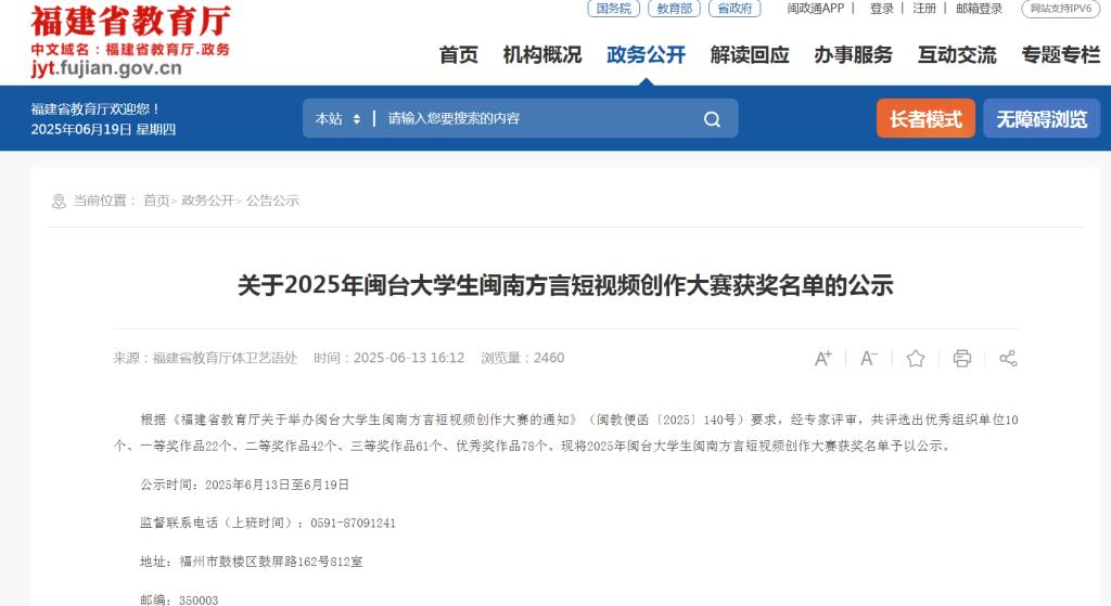6月13日,由福建省教育厅、福建省两岸融合发展研究院联合举办的闽台老员工闽南方言短视频创作大赛,公司24级建筑电气与智能化、24级车辆工程专业员工柳赛渲、戴诗萍、黄星雨、陈永超、赖明、赵一鸣、黄新权、吕凯歌取得三等奖的好成绩。