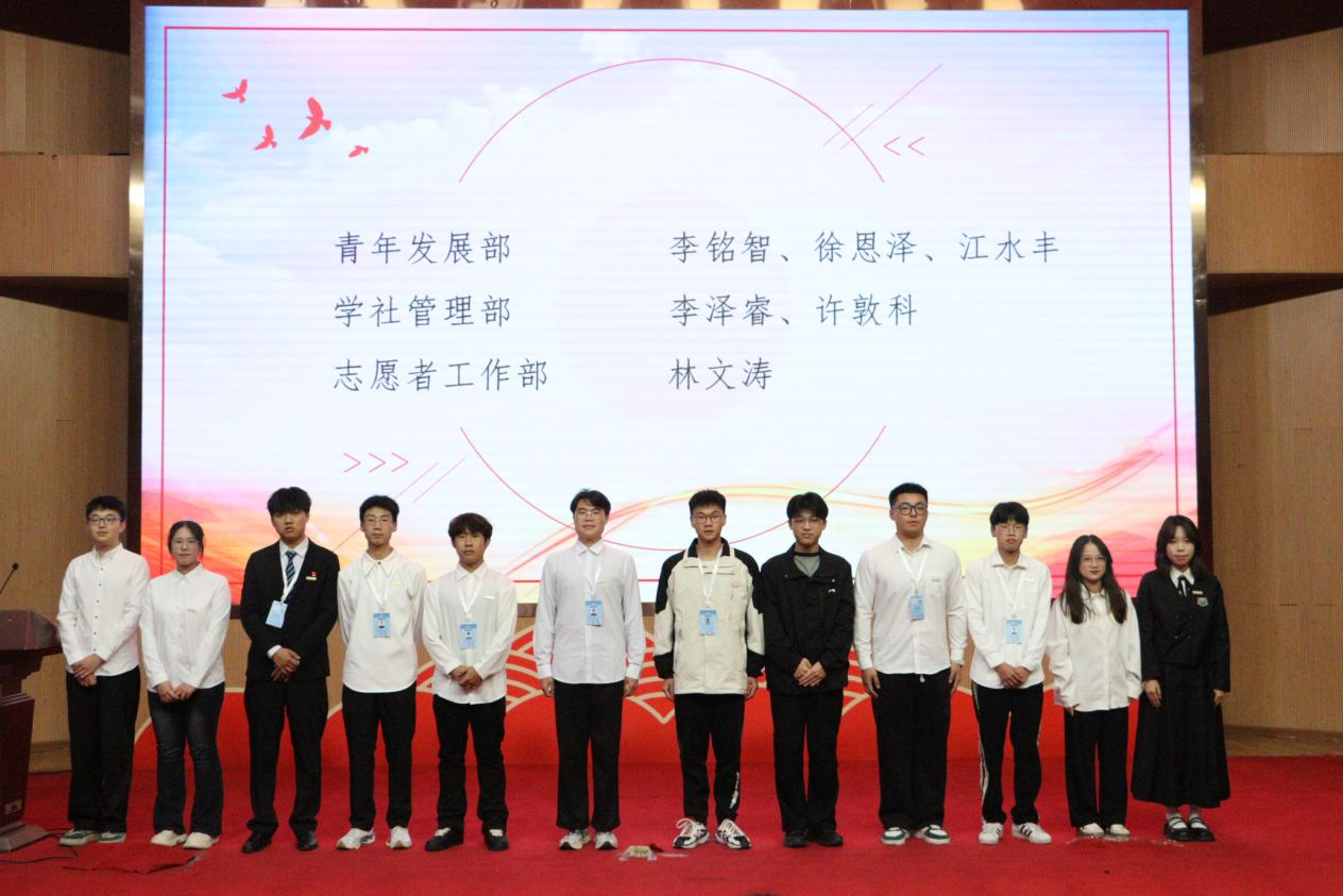 原团委员工会主席吴恩泽、原团委副书记黄夏怡发表讲话,他们对一年的工作进行了总结,对新一届团委员工会提出了殷切希望,王佳佳老师、黄泳华老师对原团委、员工会主席团成员颁发聘书和水晶杯,袁灵逸老师为团委、员工会优秀成员颁发荣誉证书。