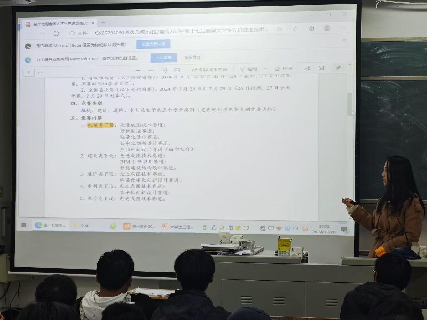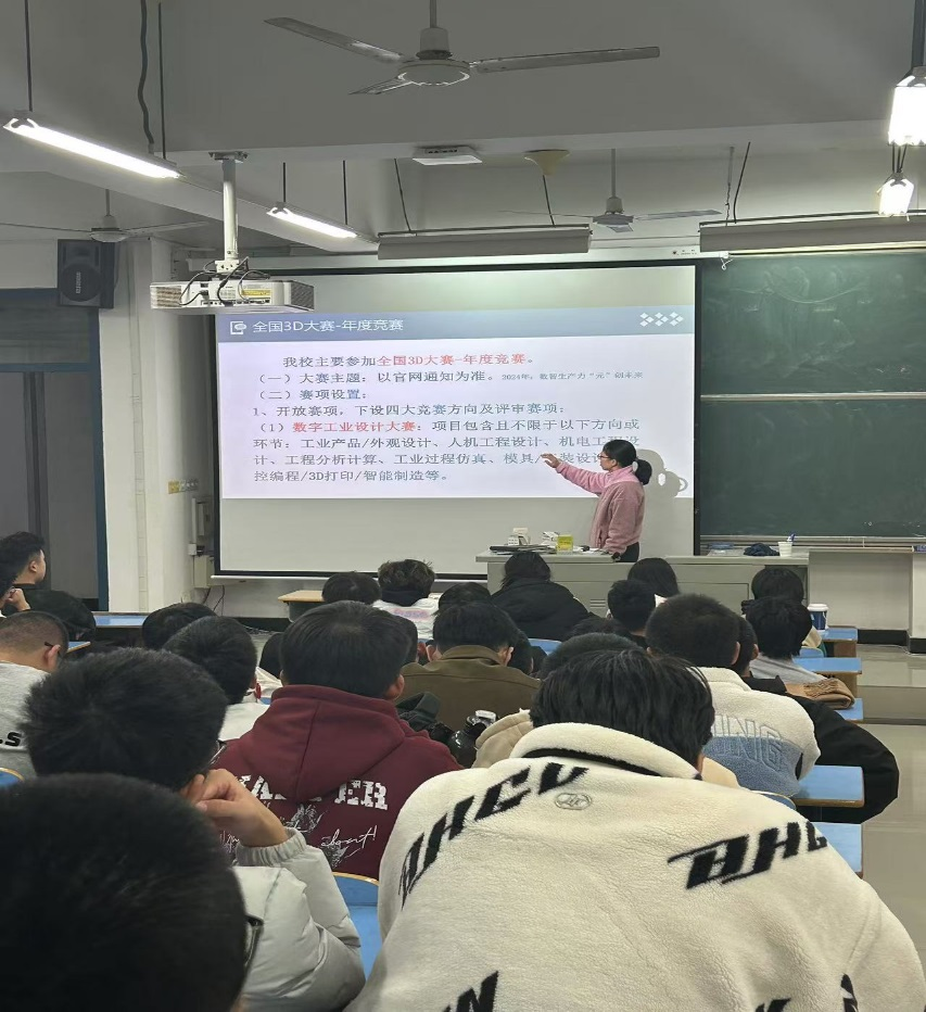 为让同学们了解学科竞赛相关内容,帮助同学们更好地做好竞赛规划,指导同学们高效备赛,为2025年英国上市公司365参加学科竞赛奠定坚实基础。12月19日-12月20日,学院组织机械学科竞赛负责老师在DB301阶梯教室讲解机械学科竞赛相关内容,2023级和2024级机械、机械闽台和车辆专业约80余名同学参加讲座。